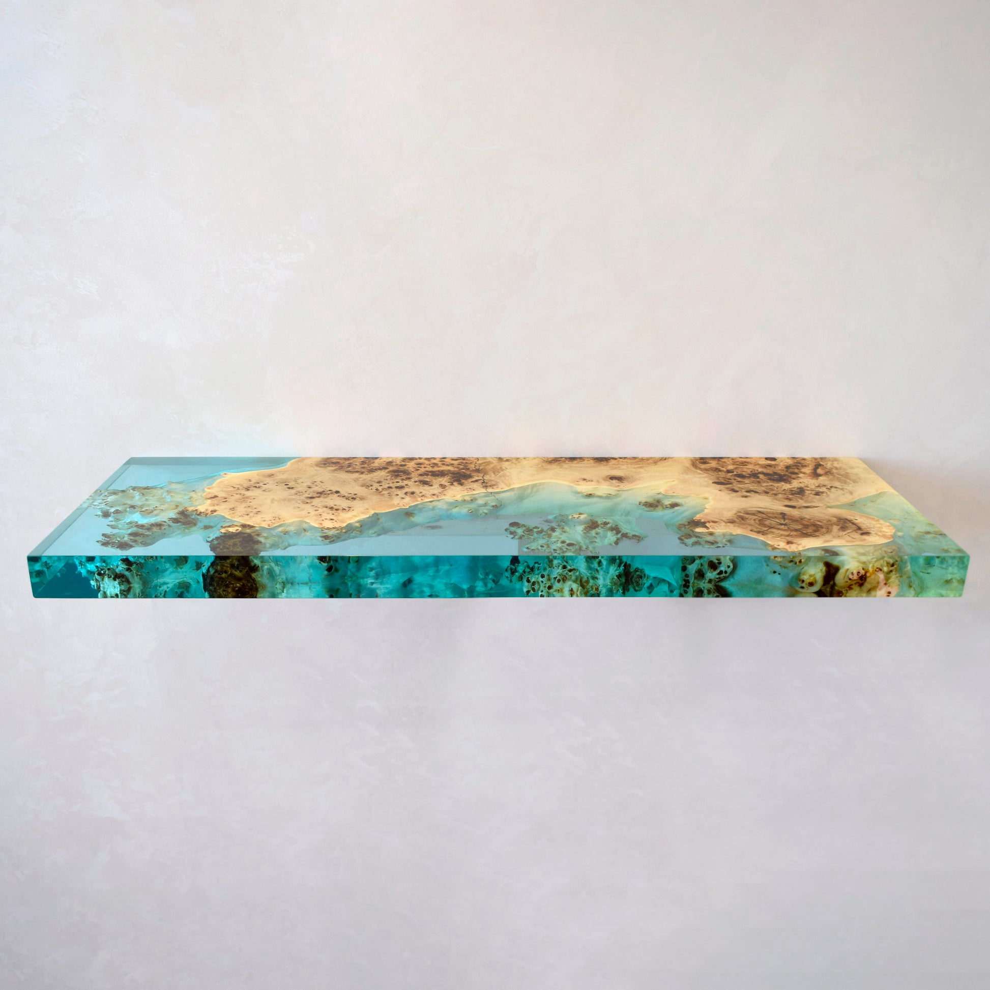 Clear Epoxy & Burl Poplar Floating Shelf